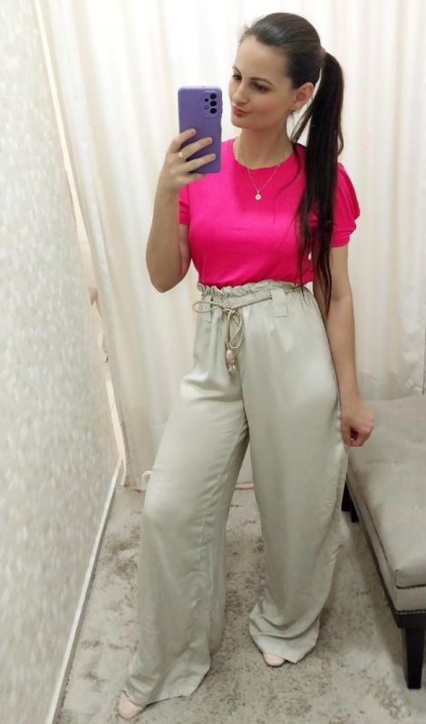 Calça Wide Leg C/Cinto Lunelli(1) - Bege
